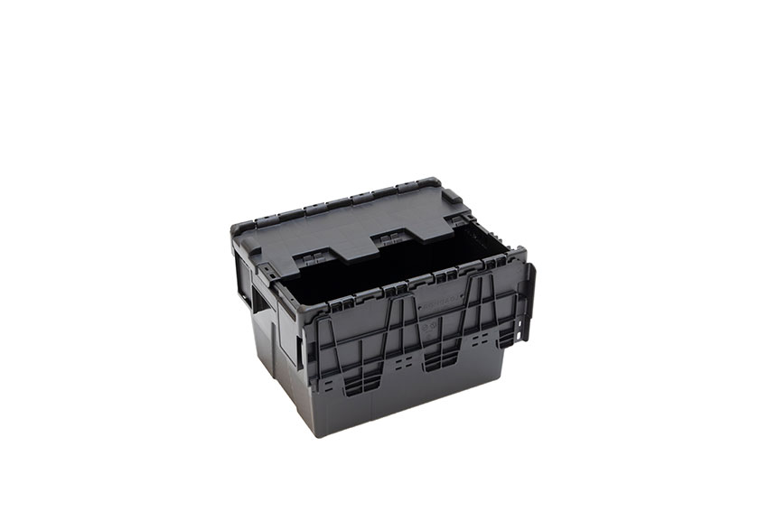 • Einzigartiges Deckeldesign: lässt sich beim Stapeln vollständig flach neben den Behälter klappen, wodurch Beschädigungen am Behälter reduziert werden und zusätzlicher Platz beim Rücktransport gespart wird