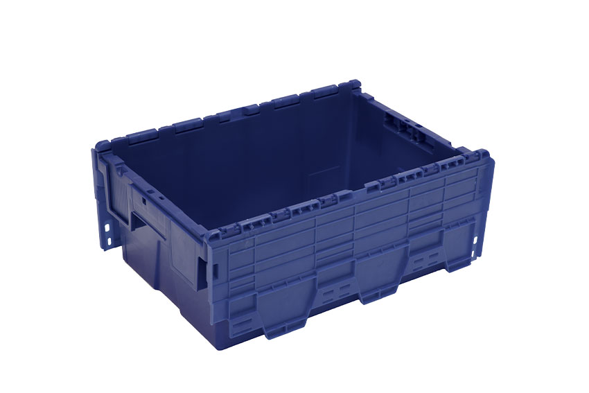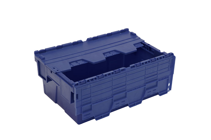 - Einzigartiges Deckeldesign: lässt sich beim Stapeln vollständig flach neben den Behälter klappen, wodurch Beschädigungen am Behälter reduziert werden und zusätzlicher Platz beim Rücktransport gespart wird