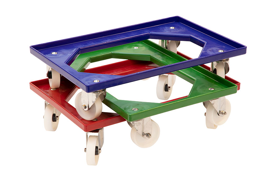 - Dolly's sind effizient stapelbar, um Platz bei der Lagerung zu sparen