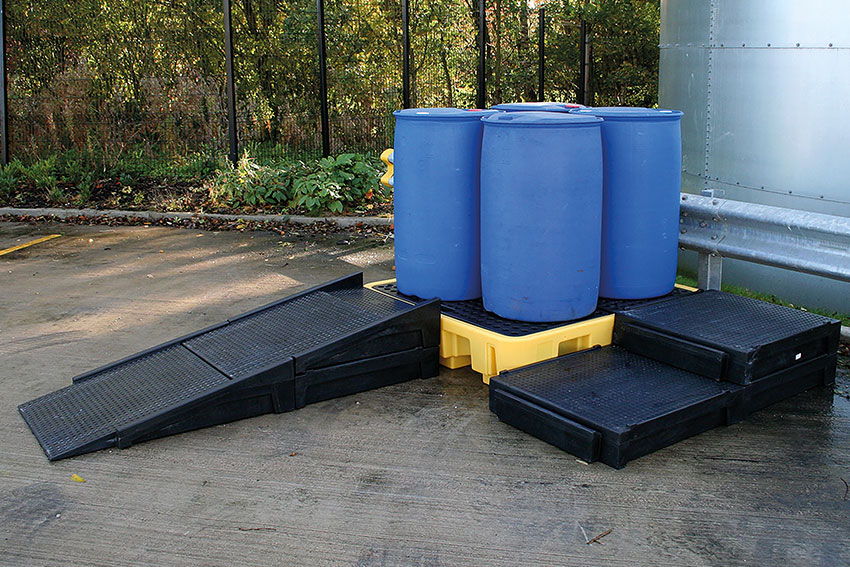 • Modulares System für einfachen Zugang zu Auffangpaletten auf verschiedenen Höhen
