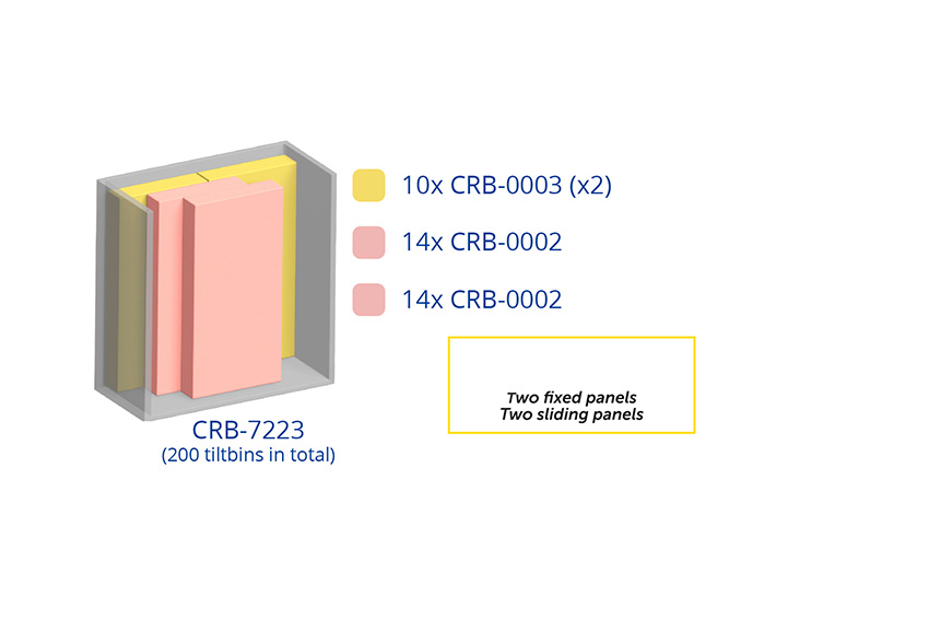 - Integrated tilting tray modules per sliding panel: 14x CRB-0002 (x2)